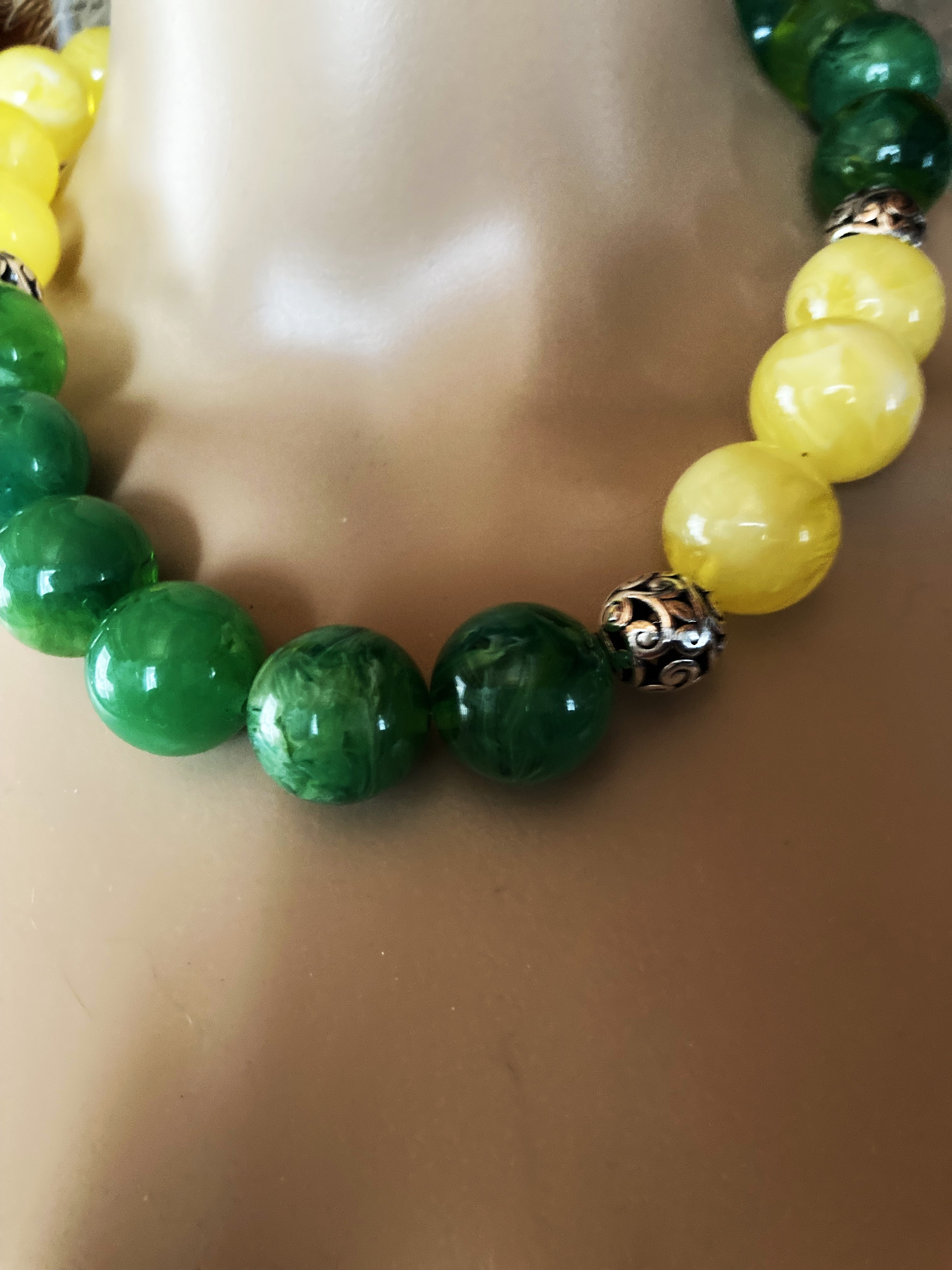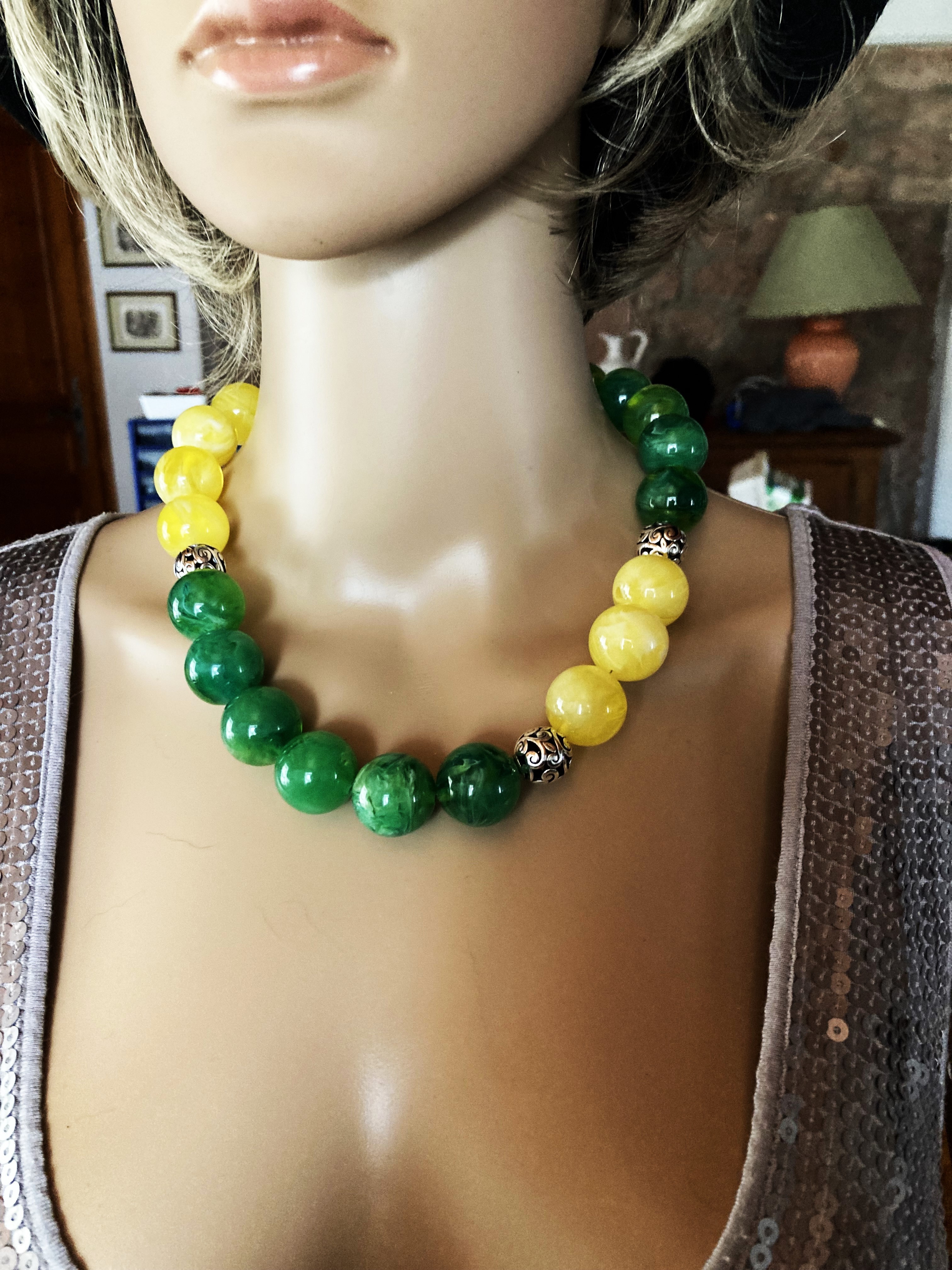 Superbe collier en ambre jaune et ambre vert. Bijou femme.