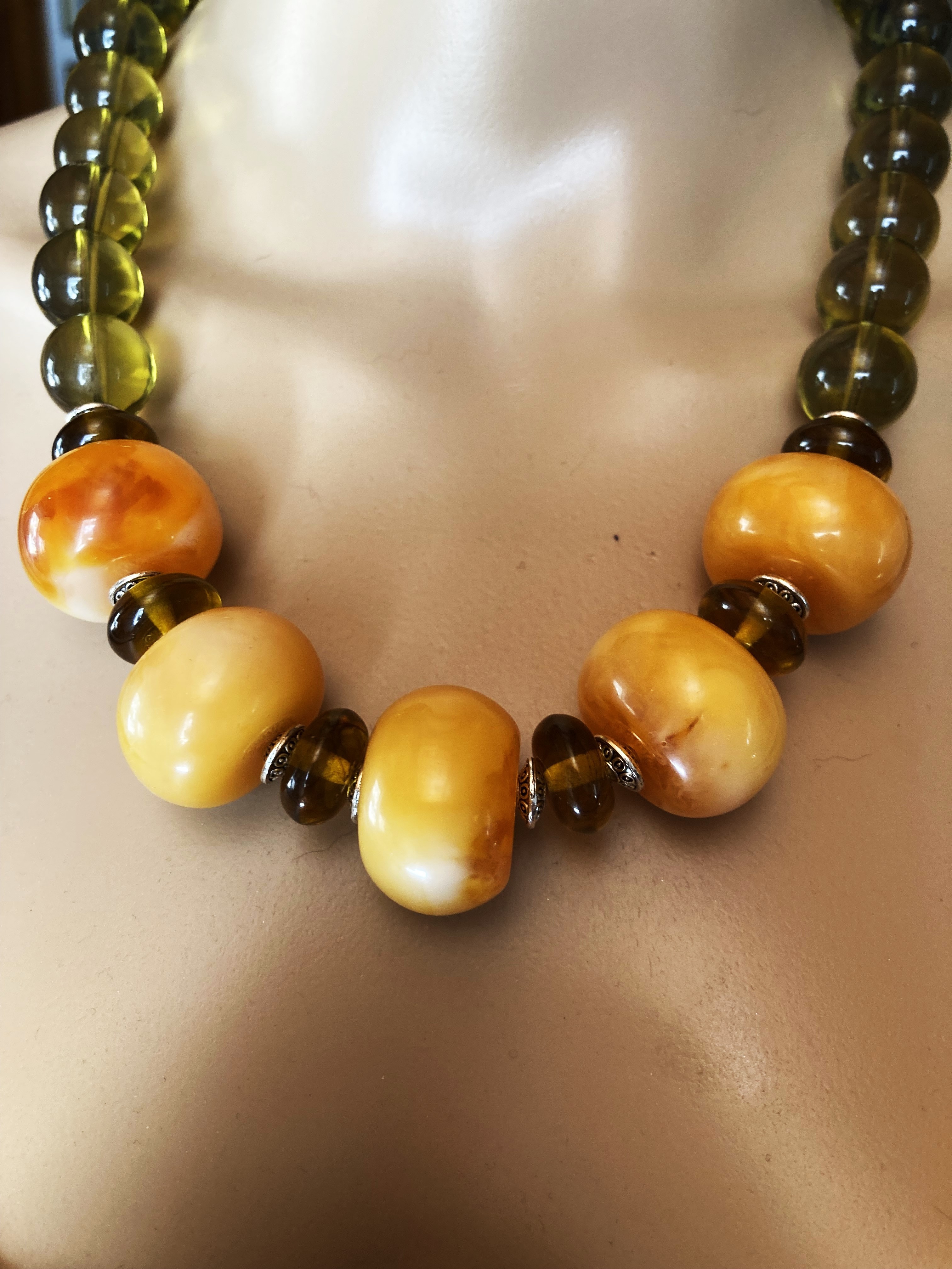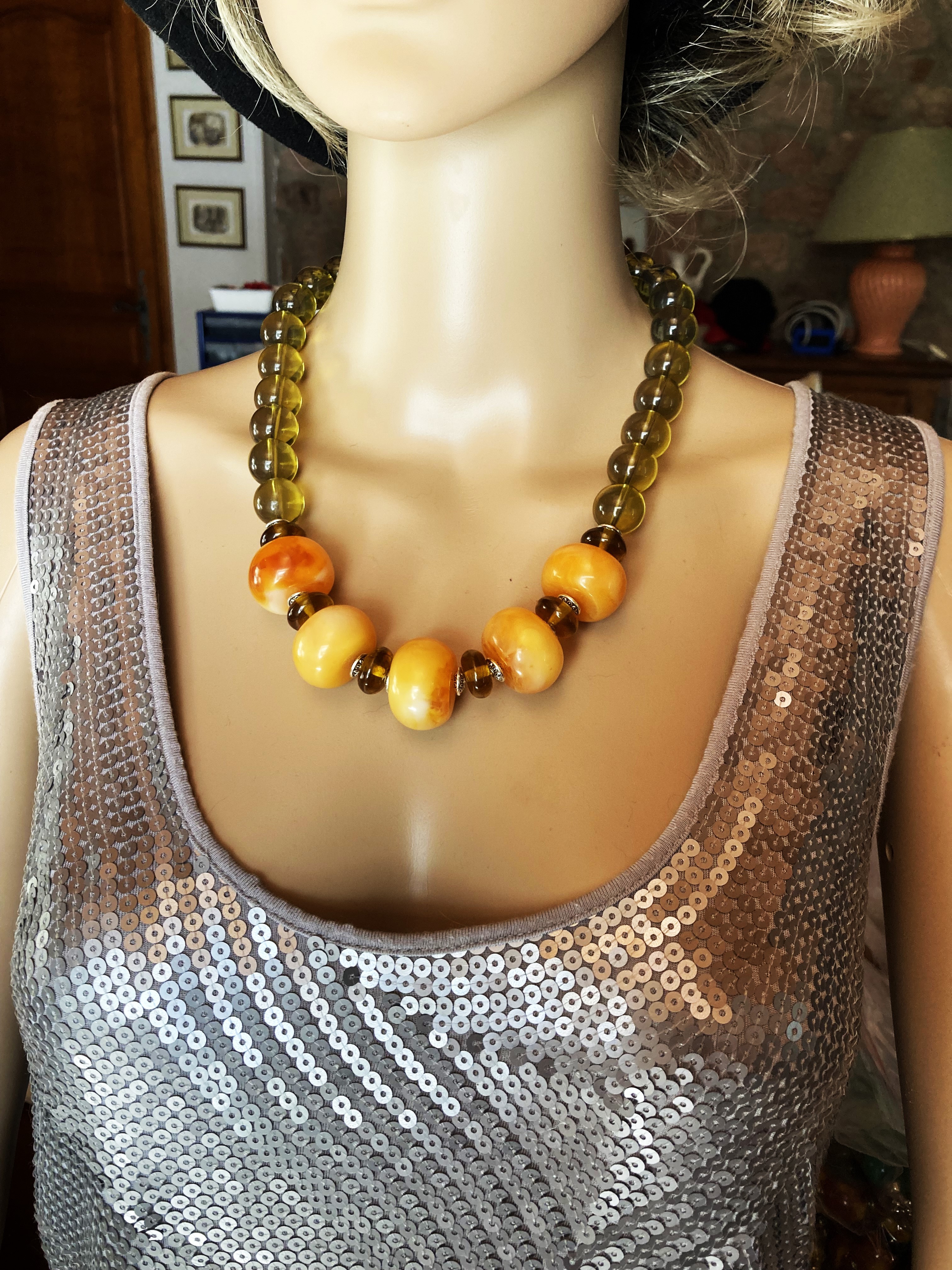 Superbe collier en ambre jaune et ambre vert. bijou femme.