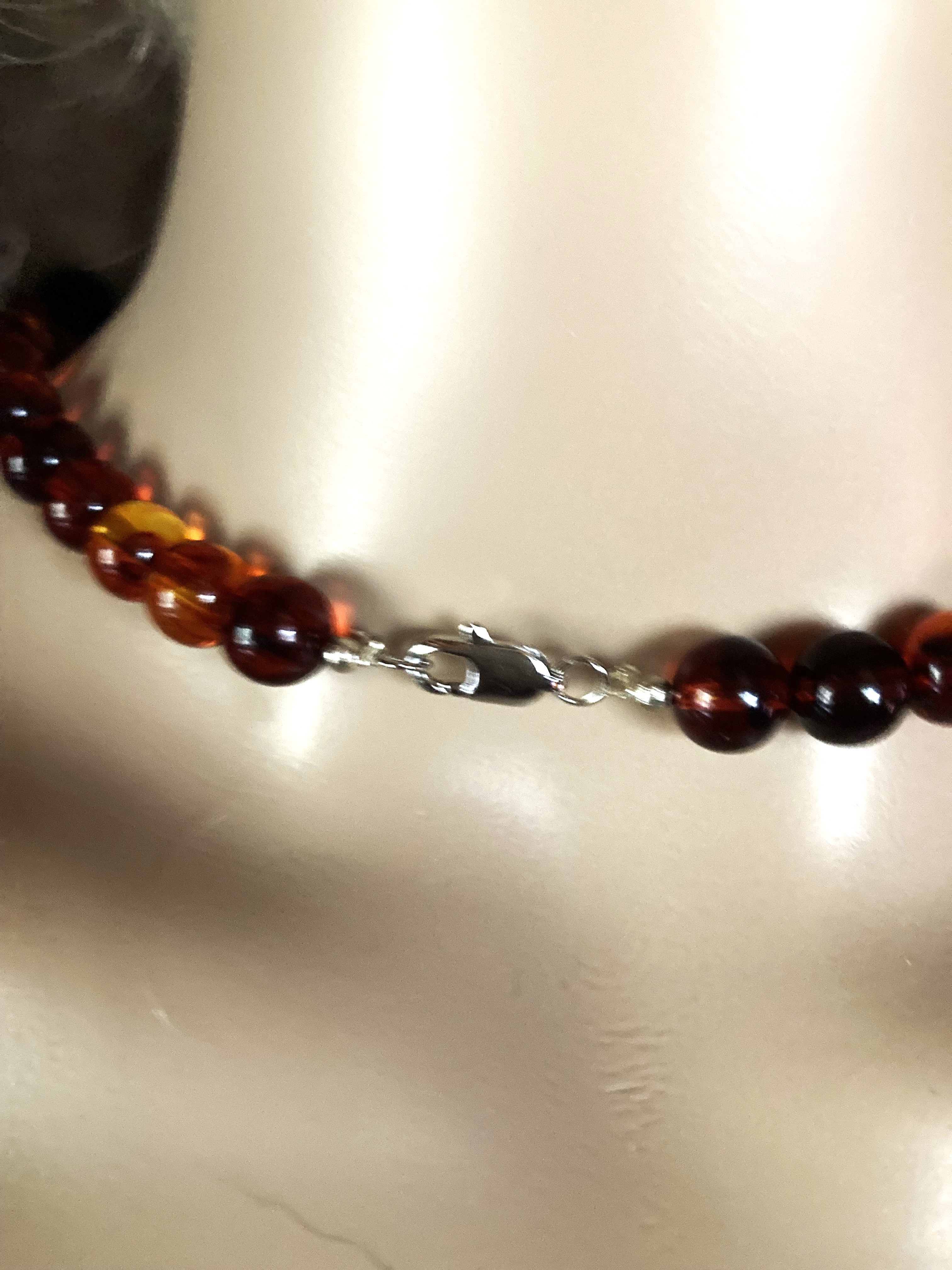 Collier en ambre brun/roux. Classique, Bijou Femme.