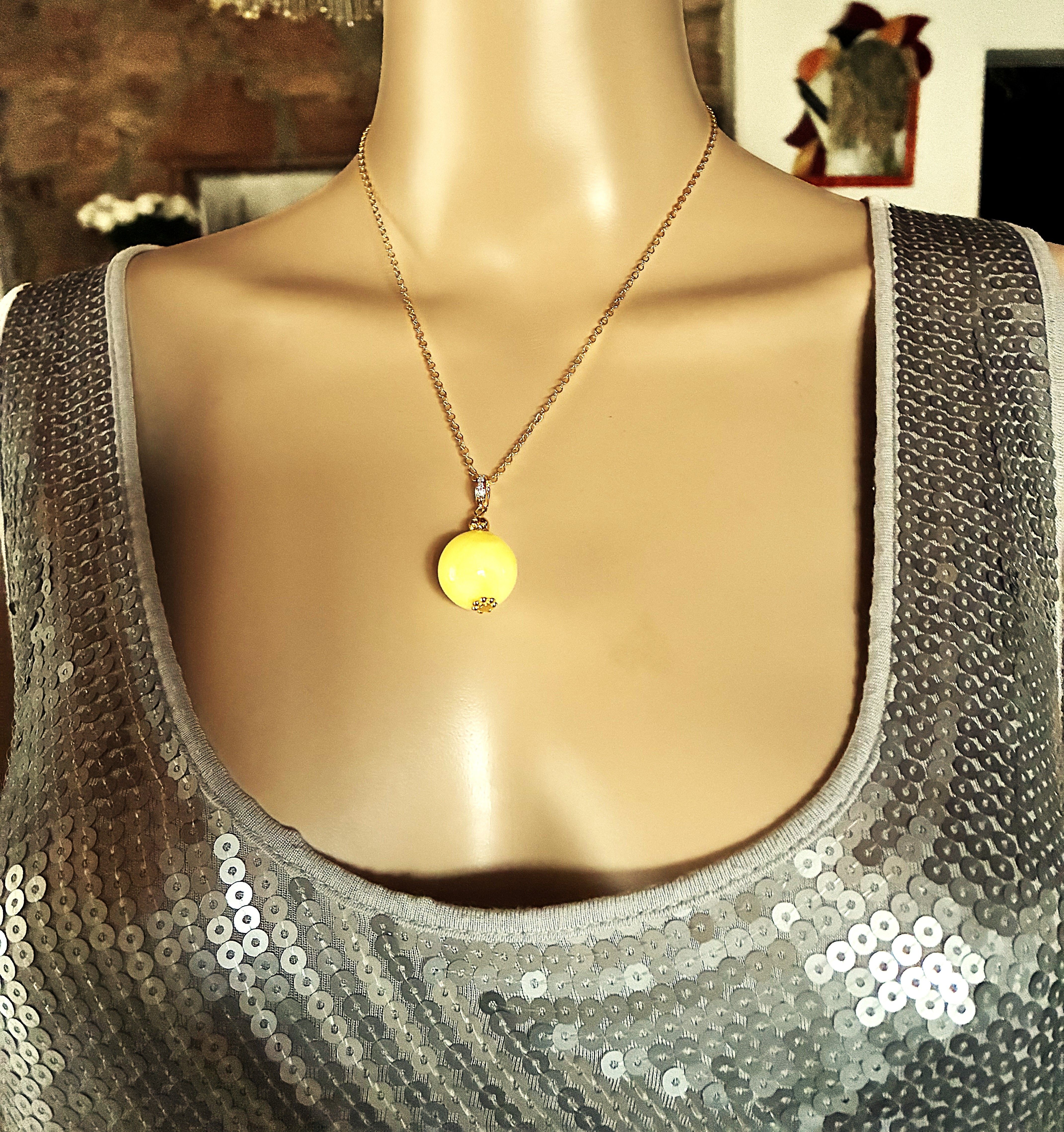 Très belle perle ronde de 16mm en ambre jaune.